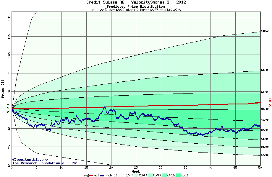 The following graph plots the year-to-date performance of the stock for 2012 compared to the probability calculated by a random walk model.