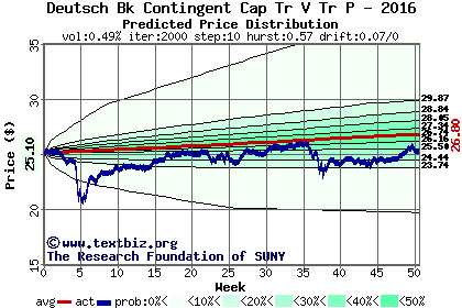 The following graph plots the year-to-date performance of the stock for 2016 compared to the probability calculated by a random walk model.
