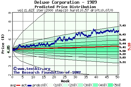 The following graph plots the year-to-date performance of the stock for 1989 compared to the probability calculated by a random walk model.