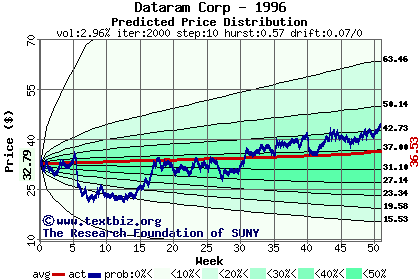 The following graph plots the year-to-date performance of the stock for 1996 compared to the probability calculated by a random walk model.
