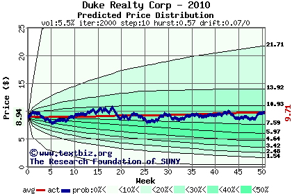 The following graph plots the year-to-date performance of the stock for 2010 compared to the probability calculated by a random walk model.