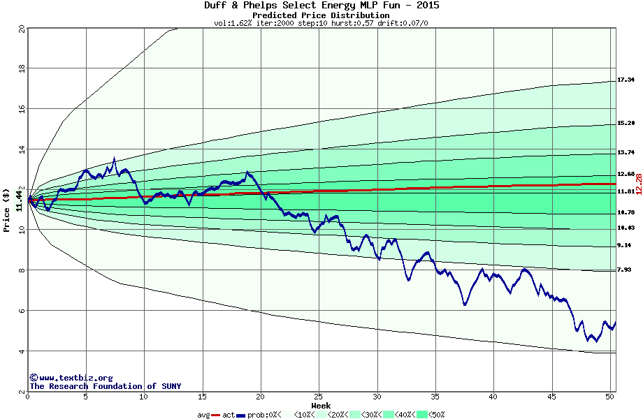 The following graph plots the year-to-date performance of the stock for 2015 compared to the probability calculated by a random walk model.