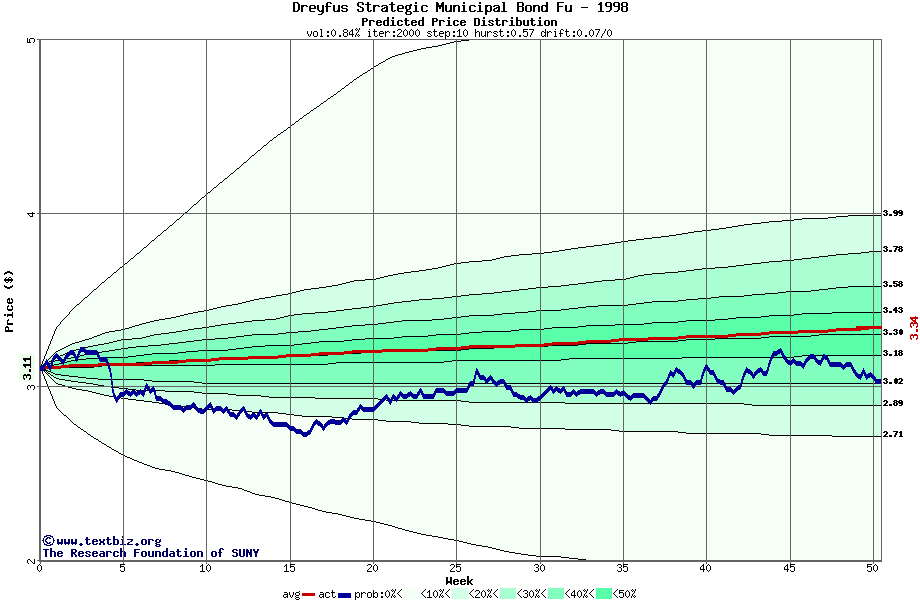 The following graph plots the year-to-date performance of the stock for 1998 compared to the probability calculated by a random walk model.
