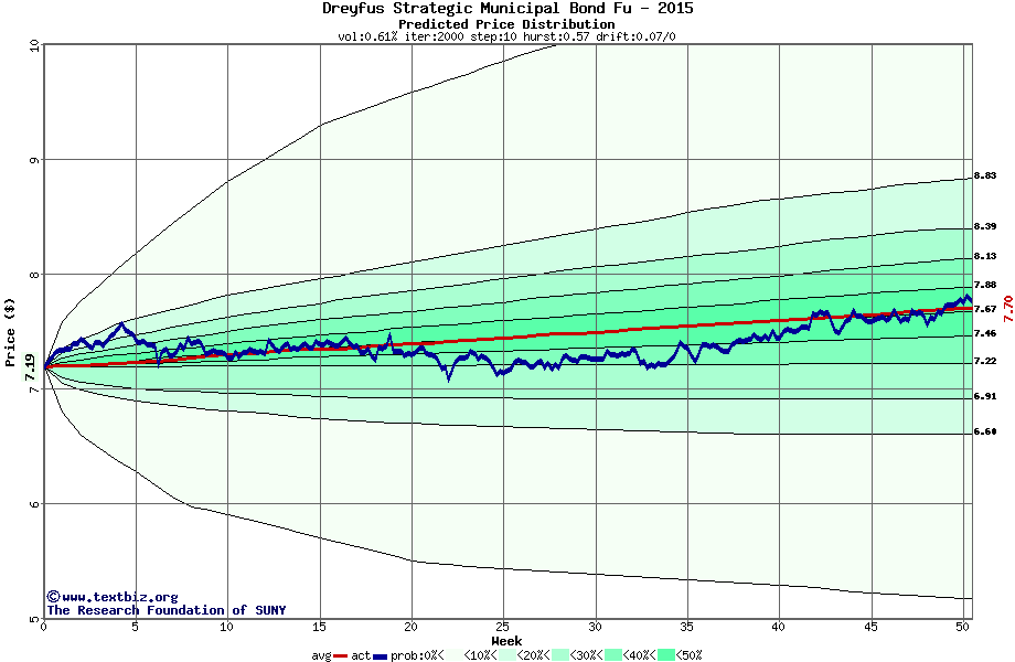 The following graph plots the year-to-date performance of the stock for 2015 compared to the probability calculated by a random walk model.