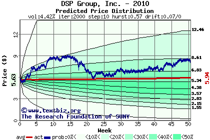 The following graph plots the year-to-date performance of the stock for 2010 compared to the probability calculated by a random walk model.