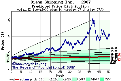 The following graph plots the year-to-date performance of the stock for 2007 compared to the probability calculated by a random walk model.