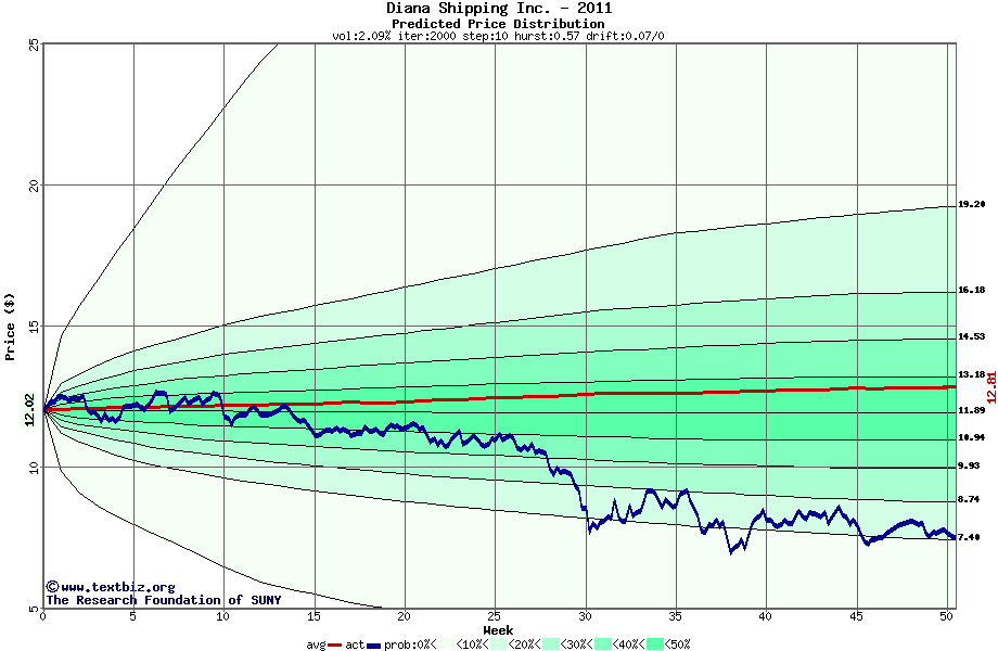 The following graph plots the year-to-date performance of the stock for 2011 compared to the probability calculated by a random walk model.
