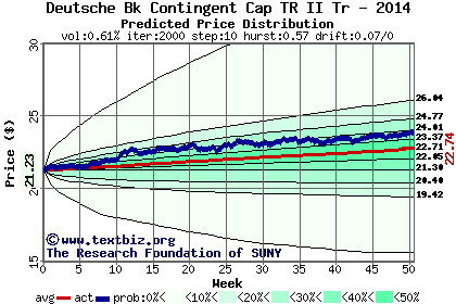 The following graph plots the year-to-date performance of the stock for 2014 compared to the probability calculated by a random walk model.