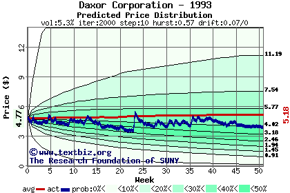 The following graph plots the year-to-date performance of the stock for 1993 compared to the probability calculated by a random walk model.