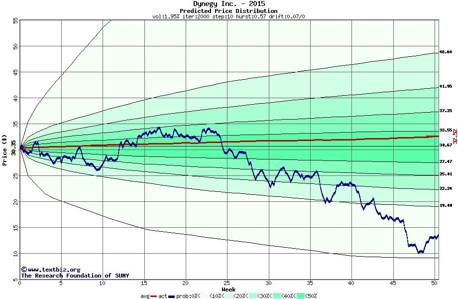 The following graph plots the year-to-date performance of the stock for 2015 compared to the probability calculated by a random walk model.
