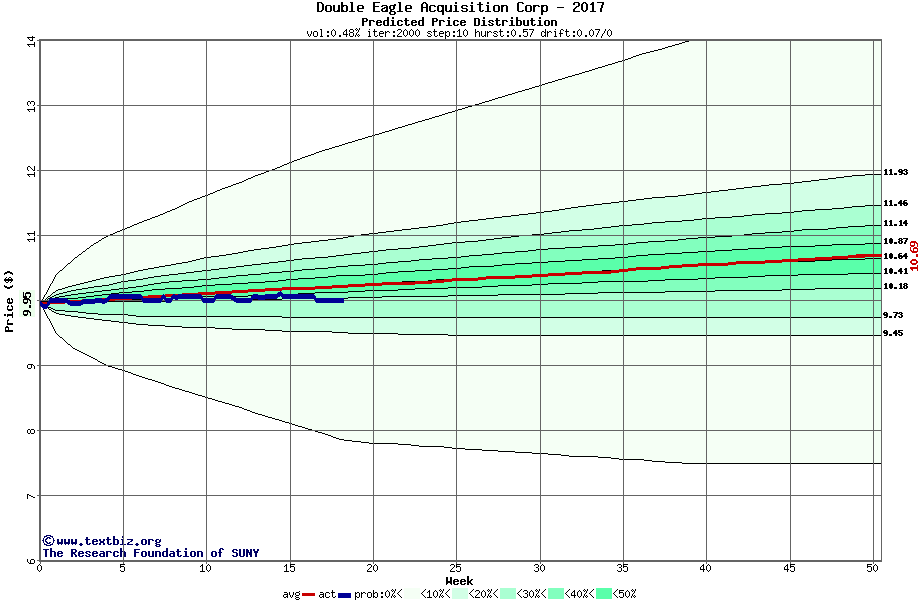 The following graph plots the year-to-date performance of the stock for 2017 compared to the probability calculated by a random walk model.