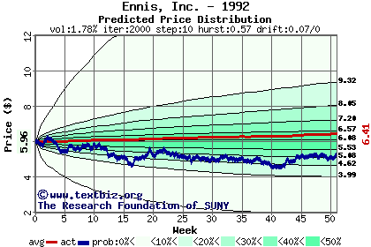 The following graph plots the year-to-date performance of the stock for 1992 compared to the probability calculated by a random walk model.