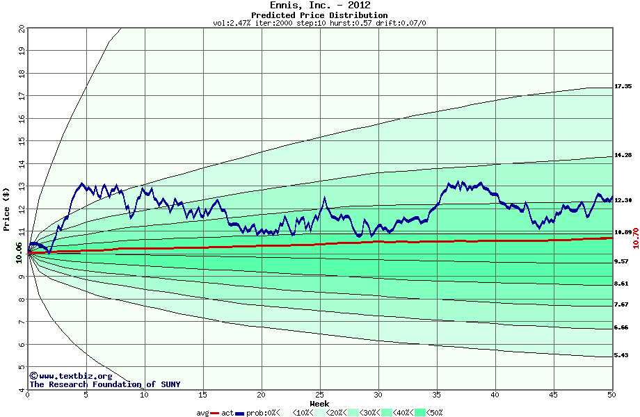 The following graph plots the year-to-date performance of the stock for 2012 compared to the probability calculated by a random walk model.