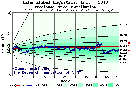 The following graph plots the year-to-date performance of the stock for 2010 compared to the probability calculated by a random walk model.
