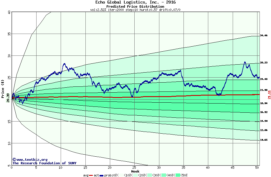 The following graph plots the year-to-date performance of the stock for 2016 compared to the probability calculated by a random walk model.