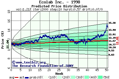 The following graph plots the year-to-date performance of the stock for 1998 compared to the probability calculated by a random walk model.
