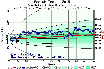 The following graph plots the year-to-date performance of the stock for 2015 compared to the probability calculated by a random walk model.