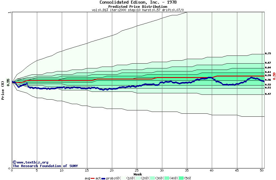 The following graph plots the year-to-date performance of the stock for 1978 compared to the probability calculated by a random walk model.