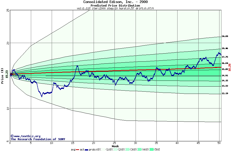 The following graph plots the year-to-date performance of the stock for 2000 compared to the probability calculated by a random walk model.