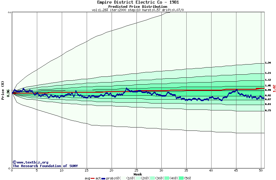 The following graph plots the year-to-date performance of the stock for 1981 compared to the probability calculated by a random walk model.