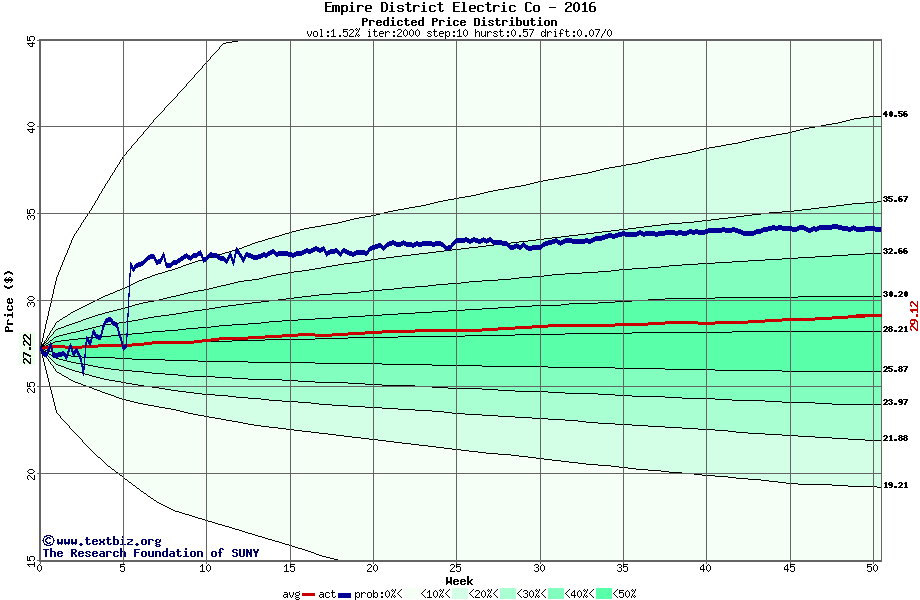 The following graph plots the year-to-date performance of the stock for 2016 compared to the probability calculated by a random walk model.
