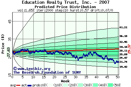 The following graph plots the year-to-date performance of the stock for 2007 compared to the probability calculated by a random walk model.