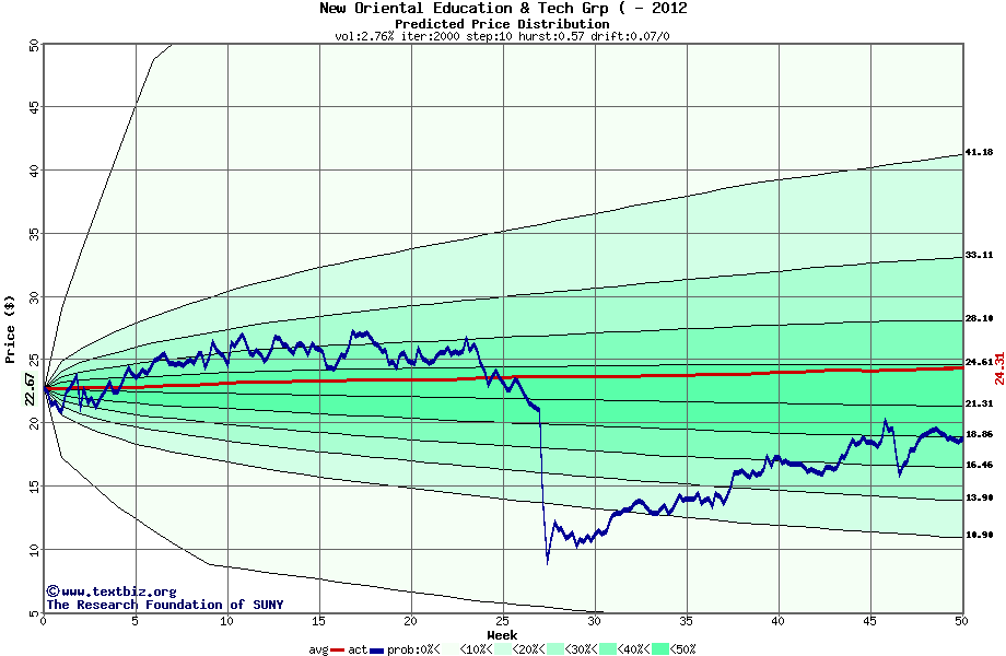 The following graph plots the year-to-date performance of the stock for 2012 compared to the probability calculated by a random walk model.