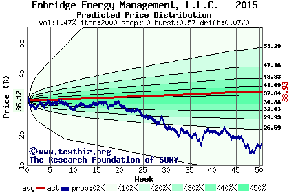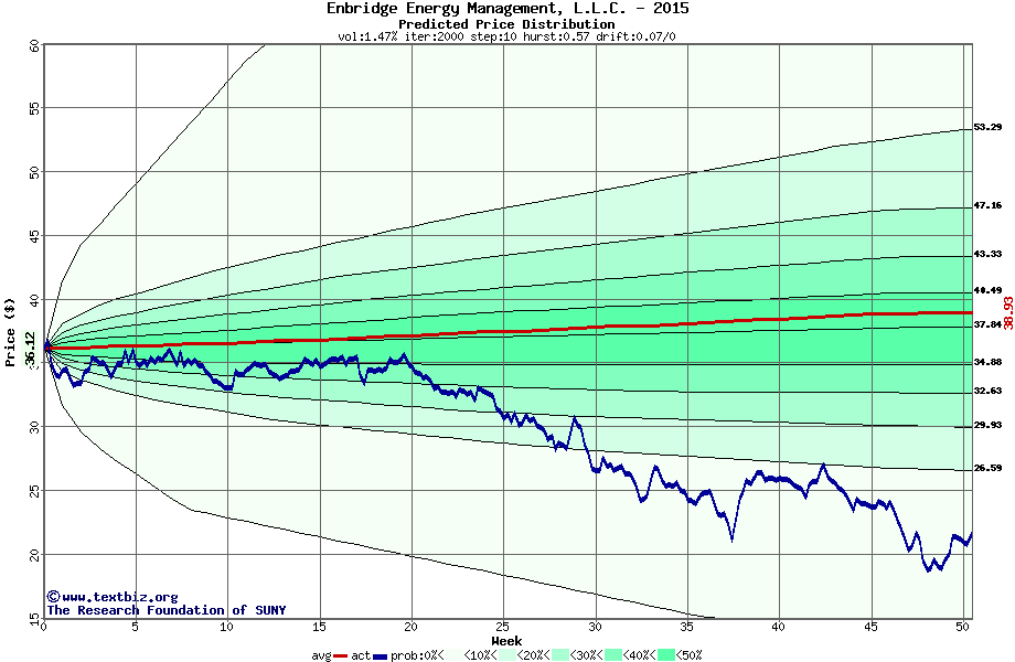 The following graph plots the year-to-date performance of the stock for 2015 compared to the probability calculated by a random walk model.