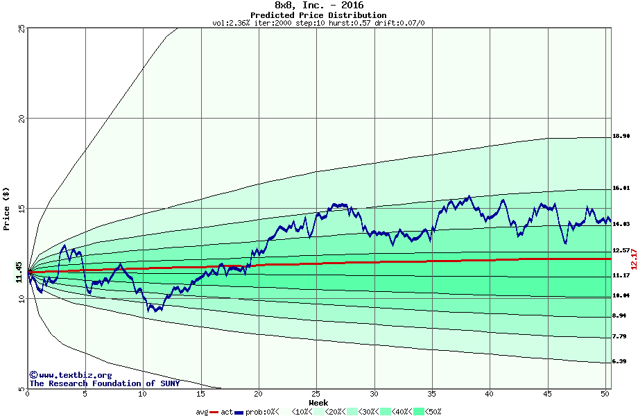 The following graph plots the year-to-date performance of the stock for 2016 compared to the probability calculated by a random walk model.