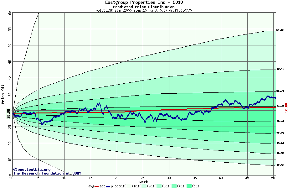 The following graph plots the year-to-date performance of the stock for 2010 compared to the probability calculated by a random walk model.