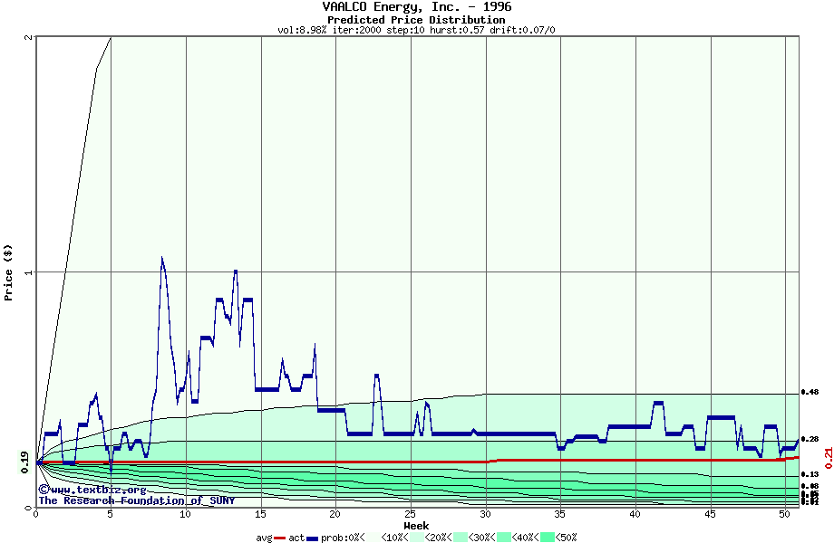 The following graph plots the year-to-date performance of the stock for 1996 compared to the probability calculated by a random walk model.