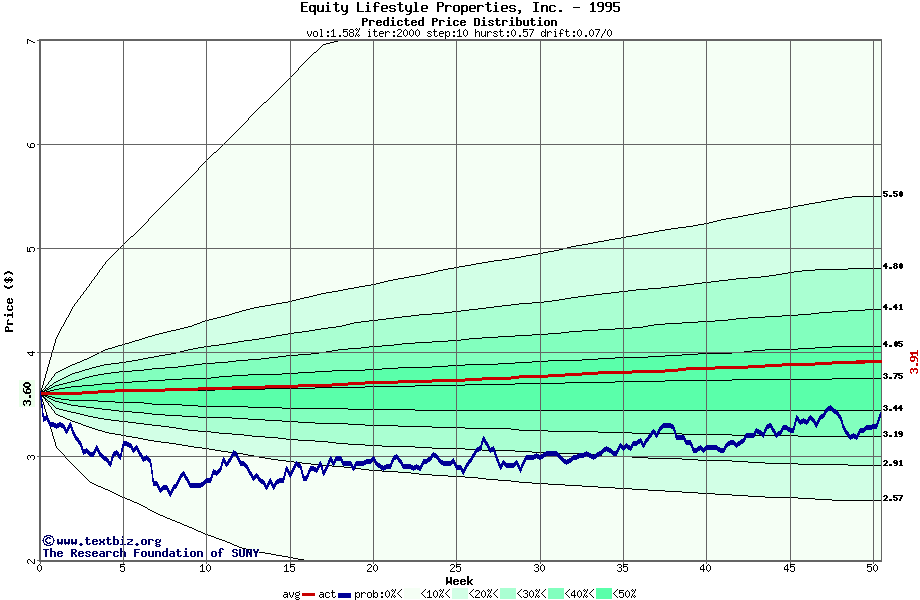The following graph plots the year-to-date performance of the stock for 1995 compared to the probability calculated by a random walk model.