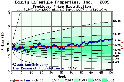 The following graph plots the year-to-date performance of the stock for 2009 compared to the probability calculated by a random walk model.