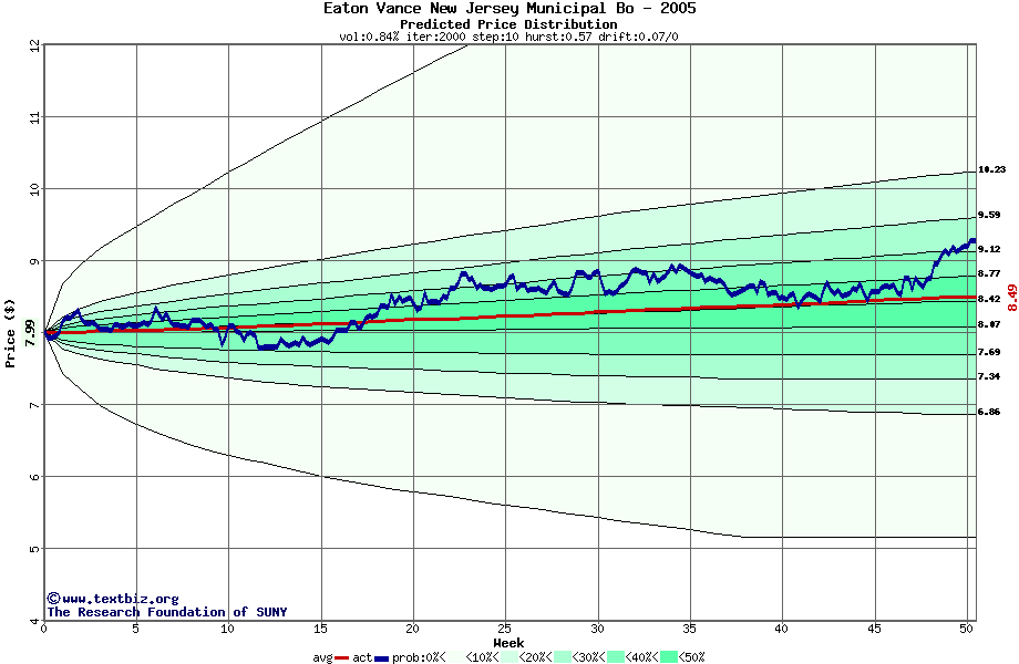 The following graph plots the year-to-date performance of the stock for 2005 compared to the probability calculated by a random walk model.
