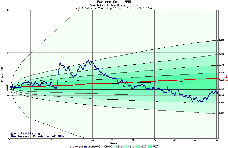 The following graph plots the year-to-date performance of the stock for 1995 compared to the probability calculated by a random walk model.