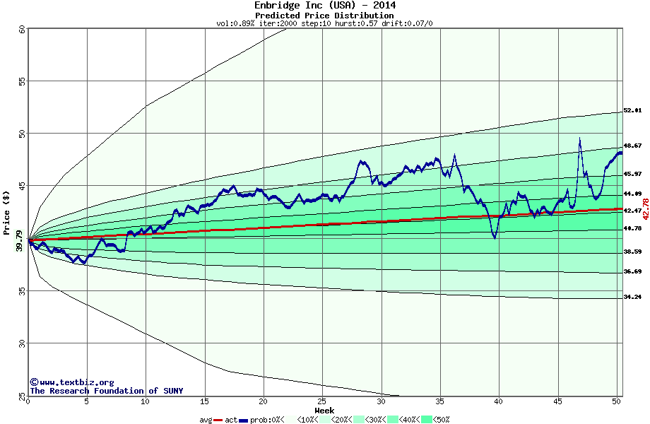 The following graph plots the year-to-date performance of the stock for 2014 compared to the probability calculated by a random walk model.