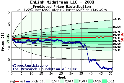 The following graph plots the year-to-date performance of the stock for 2008 compared to the probability calculated by a random walk model.