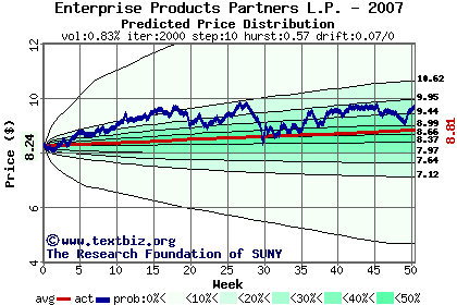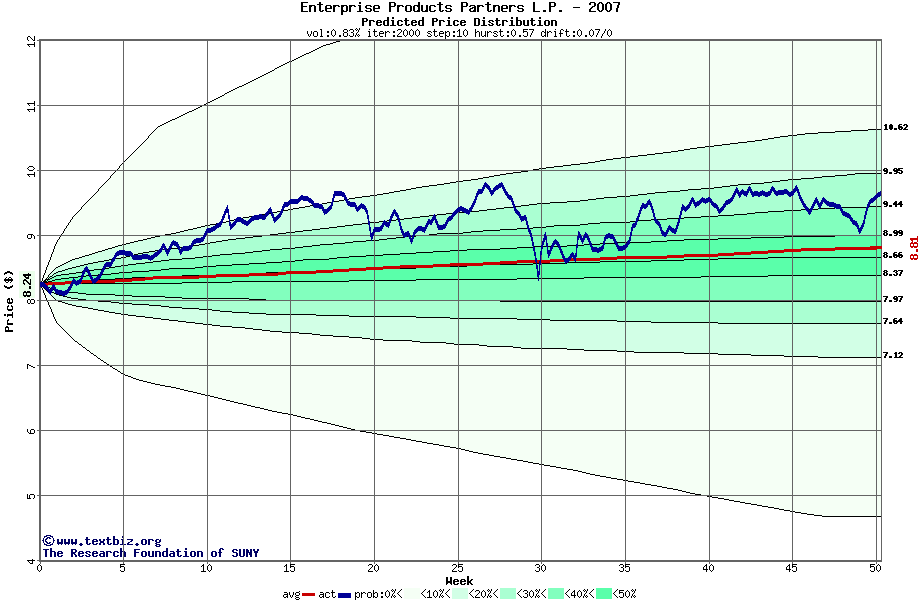 The following graph plots the year-to-date performance of the stock for 2007 compared to the probability calculated by a random walk model.