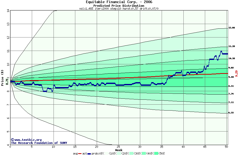 The following graph plots the year-to-date performance of the stock for 2006 compared to the probability calculated by a random walk model.