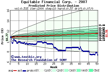 The following graph plots the year-to-date performance of the stock for 2007 compared to the probability calculated by a random walk model.