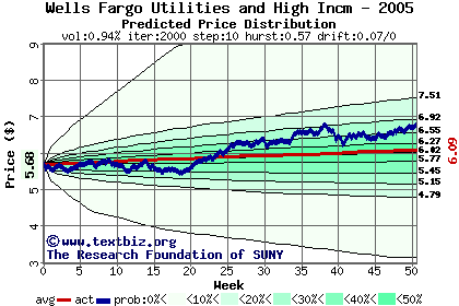 The following graph plots the year-to-date performance of the stock for 2005 compared to the probability calculated by a random walk model.