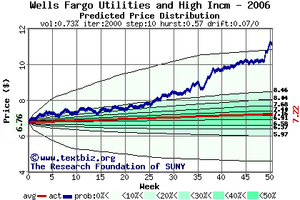 The following graph plots the year-to-date performance of the stock for 2006 compared to the probability calculated by a random walk model.