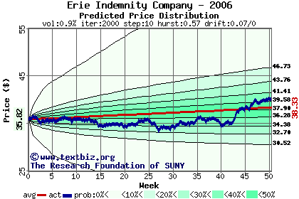 The following graph plots the year-to-date performance of the stock for 2006 compared to the probability calculated by a random walk model.