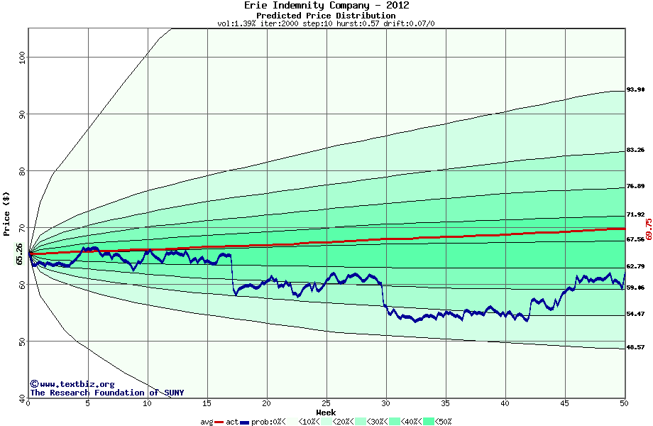 The following graph plots the year-to-date performance of the stock for 2012 compared to the probability calculated by a random walk model.