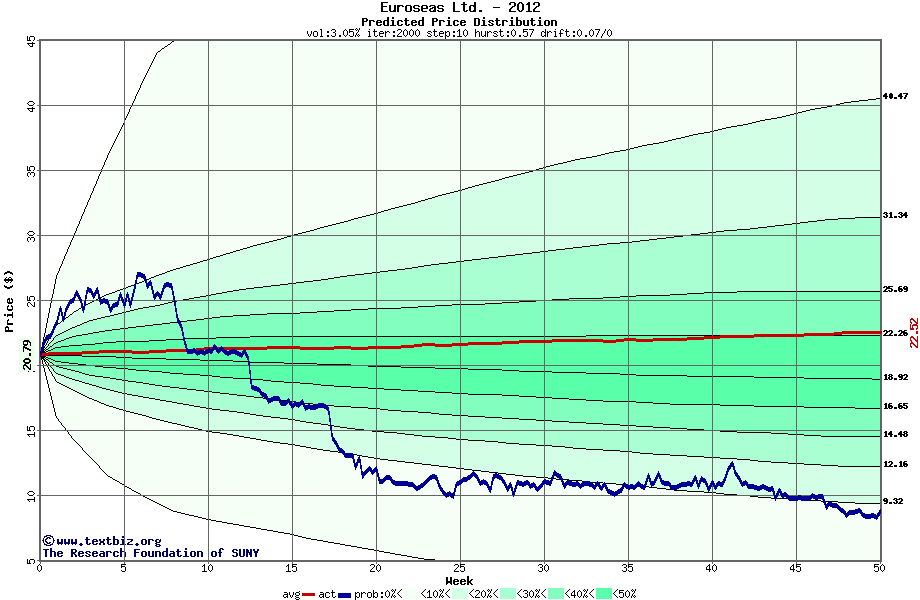 The following graph plots the year-to-date performance of the stock for 2012 compared to the probability calculated by a random walk model.