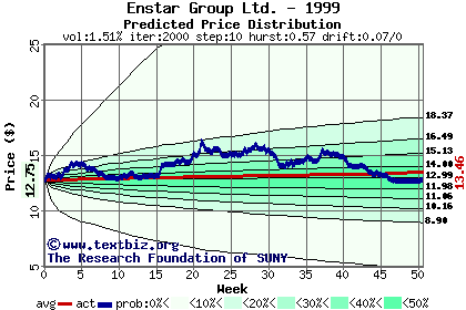 The following graph plots the year-to-date performance of the stock for 1999 compared to the probability calculated by a random walk model.
