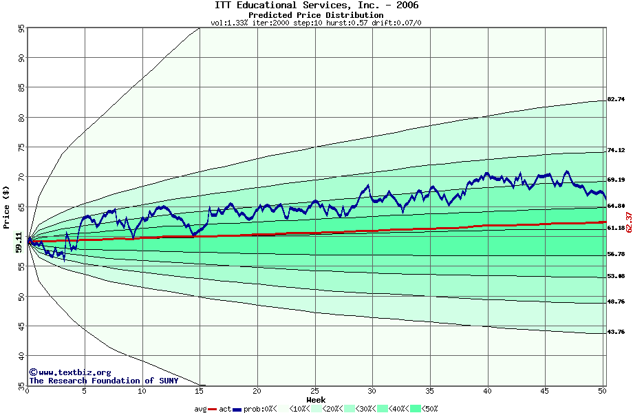 The following graph plots the year-to-date performance of the stock for 2006 compared to the probability calculated by a random walk model.
