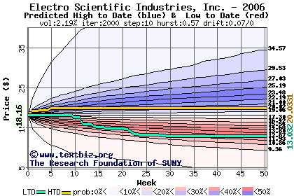 The following graph plots the year-to-date performance of the stock for 2006 compared to the probability calculated by a random walk model.
