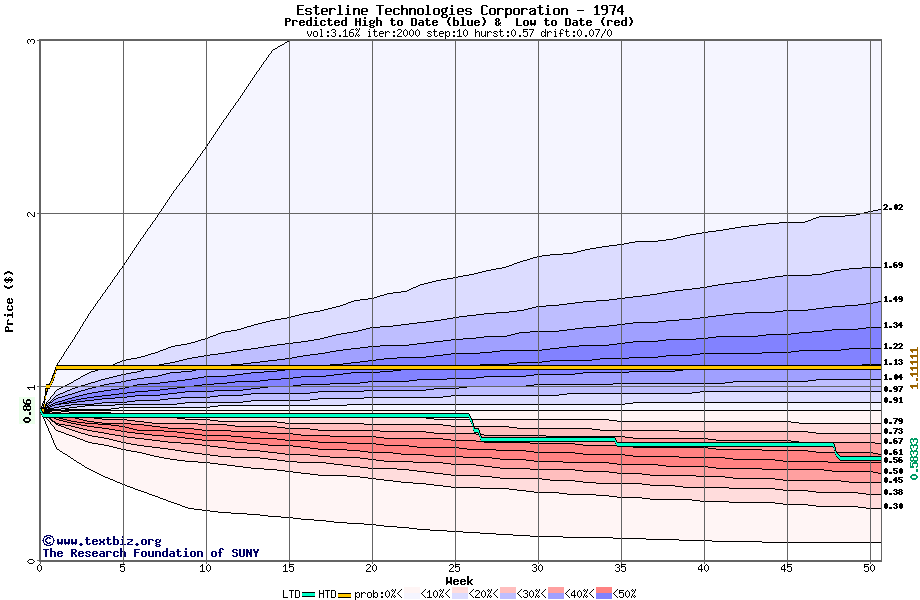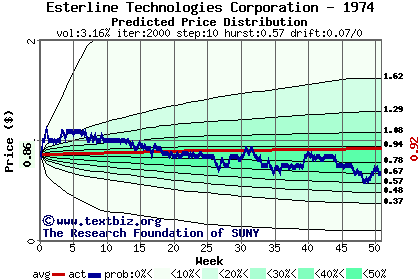 The following graph plots the year-to-date performance of the stock for 1974 compared to the probability calculated by a random walk model.