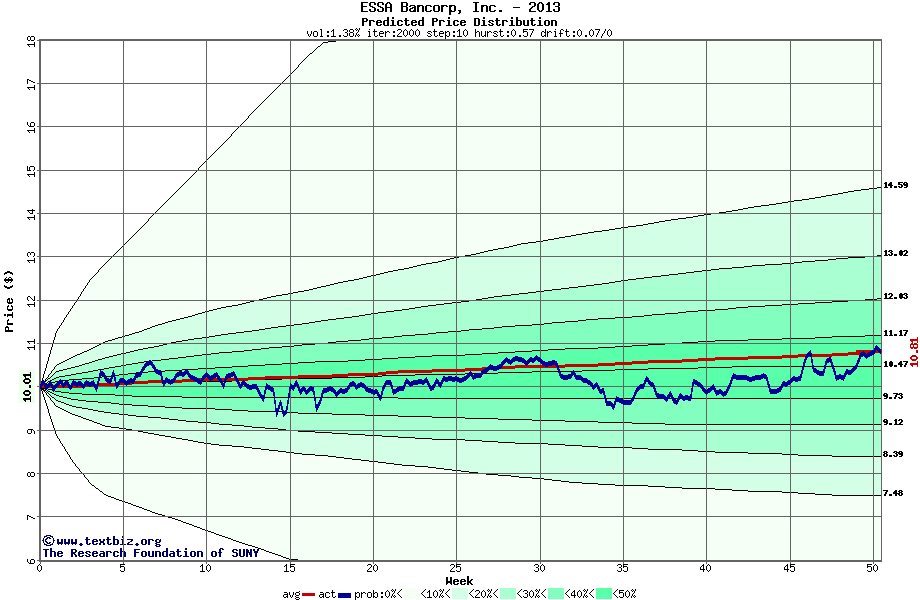 The following graph plots the year-to-date performance of the stock for 2013 compared to the probability calculated by a random walk model.